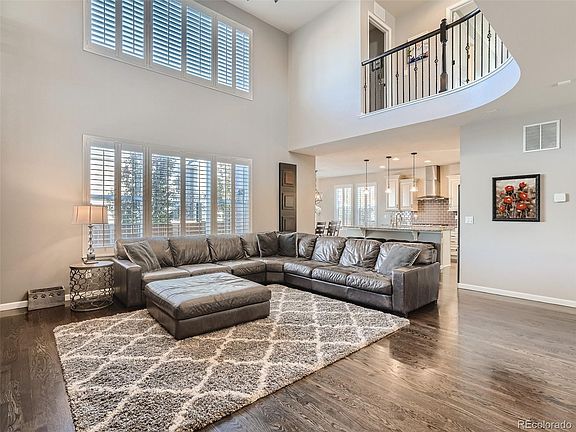 HIGH-END FINISHES, AFFORDABLE LUXURY, and READY FOR YOU TO MOVE IN! Look no more...you will not find another home like this on the market! Move into this stunning, energy-efficient, luxurious home for the holidays! Beautiful, well-maintained 6-bedroom, 5-bath, two-story home, featuring a finished basement, a large backyard, and the COMPLETE PACKAGE of upgrades. When you step into this home, your eyes are drawn to the grand, spiral staircase and elevated ceilings. The main level features beautiful, hardwood, custom plantation shutters, upgraded light fixtures, and an abundance of natural light. You'll be sure to notice the high-end finishes in the kitchen, complete with custom cabinetry, soft-close drawers, granite counter-tops, a large eat-in kitchen island, breakfast nook, stainless steel appliances and gas range, double oven, and plenty of countertop space and cabinet storage for all your kitchen, dining, and entertainment needs! In addition to a private, home-office with french doors, there is a main-level bedroom for your guests to enjoy! The upper level has four bedrooms, and features a 5-piece luxurious primary bathroom, large walk-in closet with attached laundry room, a Jack-and-Jill bathroom, and another private en-suite bathroom. The fully-finished basement boasts a large entertainment area, a wet bar with a built-in beverage refrigerator, custom cabinets, granite high-top seating for all to gather, and an additional bedroom and bathroom. The expansive backyard is perfect for bringing everyone together or for simply enjoying the beautiful Colorado outdoors, where you can relax around the fire-pit, spend time in the garden, or entertain on the stamped-concrete patio. The unique, 3-car attached garage has epoxy-coated floors and adds to the incredible curb-appeal of the home. Located in a private cul-de-sac and within walking distance of the Fallbrook Farms community park and neighborhood trails, there's plenty to appreciate about this home!