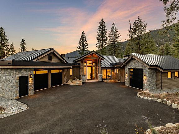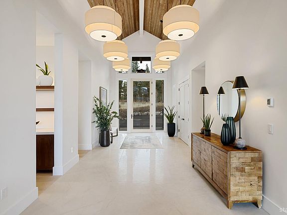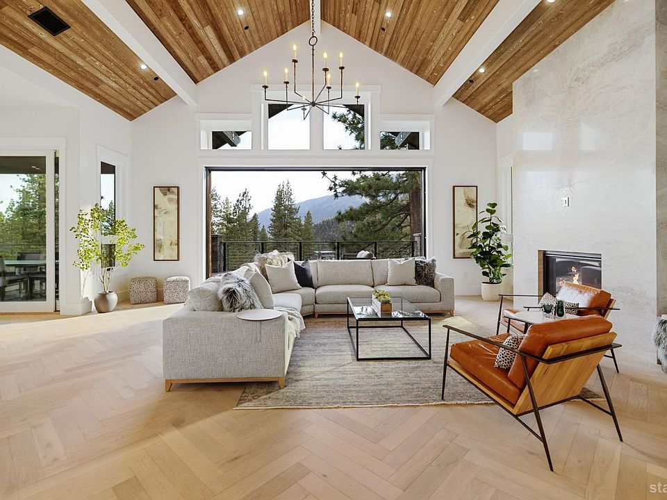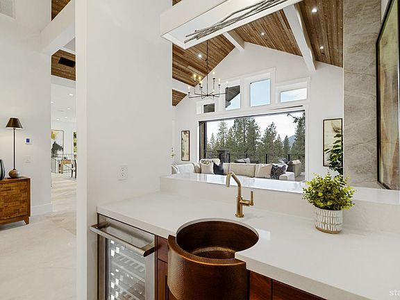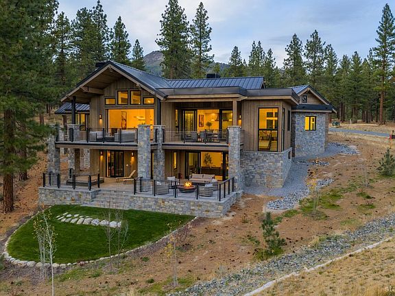 This stunning newly built Clear Creek Tahoe residence seamlessly blends modern mountain luxury with timeless design, offering an exceptional living experience within one of Nevada's most exclusive gated communities.Set on a serene homesite with unobstructed mountain views, this 4,469 sq. ft. masterpiece features four bedrooms, an office, and four and a half baths, including three ensuite bedrooms that provide comfort and privacy for family and guests.The open-concept great room welcomes you with soaring ceilings, a Taj Mahal leathered quartzite-wrapped fireplace, and expansive glass doors that create a seamless indoor-outdoor connection to the covered patio. The chef's kitchen is a true centerpiece, showcasing high-end appliances, quartzite countertops, a large island with seating, and a custom wine rack for the connoisseur. Elegant porcelain tile entry floors transition into herringbone oak flooring that flows throughout, enhancing the home's warm and sophisticated aesthetic.Designed for entertaining, the home features two wet bars with wine refrigerators and a cozy reading nook for quiet moments. Outdoor living is equally impressive, with a built-in BBQ, fire pit, and hot tub, all perfectly positioned to capture the breathtaking alpine scenery. A 3.5-car garage provides ample space for vehicles, gear, and storage.Residents of Clear Creek Tahoe enjoy access to world-class amenities, including the Coore & Crenshaw-designed golf course, an inviting clubhouse for dining and social gatherings, and the Twin Pines Lake & Ski House on Lake Tahoe's shore with private beach frontage. Additional amenities include guest cottages, Summit Camp with a pool, bocce, pickleball and tennis courts, cozy fire pits, and family-friendly recreation areas creating the ultimate year-round retreat.This home presents a rare opportunity to own a newly built mountain retreat that perfectly balances elegance, comfort, and modern design in one of Nevada's most coveted settings.