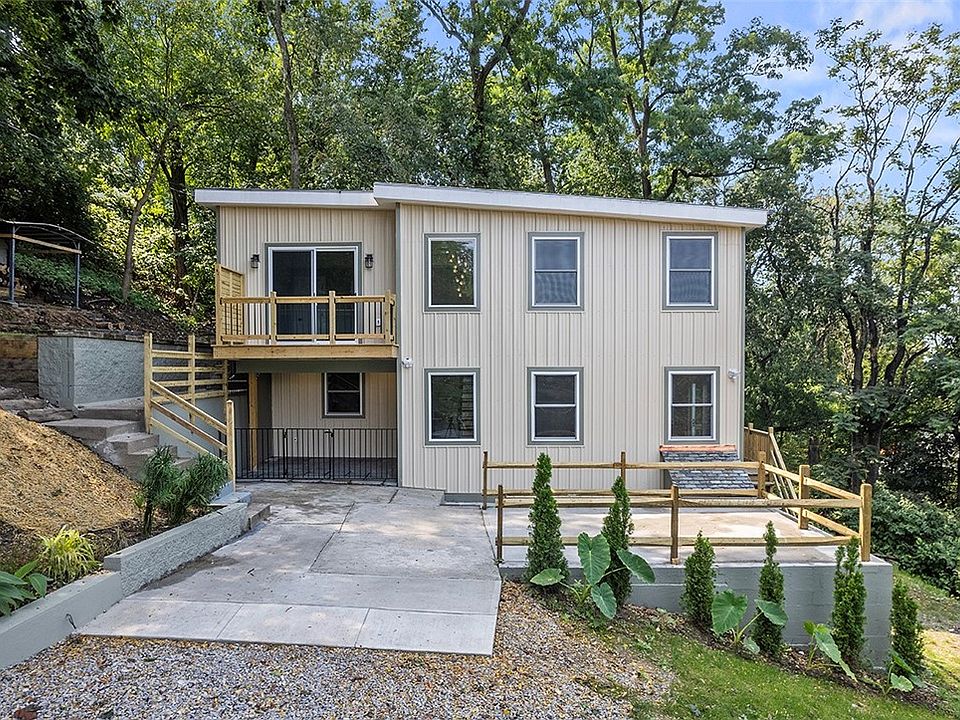 Completely rebuilt with a stunning new addition, this three bedroom, two and one-half bath home in Polish Hill combines comfort, modern aesthetics, natural beauty, and convenience to Downtown. The addition features a chef’s kitchen with quartz counters, stainless steel appliances, and sleek cabinetry, plus a private primary suite and a covered, gated bluestone patio. Oak and maple flooring flow throughout the first floor, enhanced by abundant natural light. The primary suite includes a uniquely designed bathroom and private deck. Set back at the end of a long drive and surrounded by wooded areas, the home offers rare privacy along with breathtaking Allegheny River views. Multiple decks extend the living space outdoors, and the roof is engineered to support a future rooftop deck. Laundry facilities conveniently located on the second floor. With brand-new systems, thoughtful design, and a one-of-a-kind setting, this home delivers the best of modern city living in a peaceful retreat.