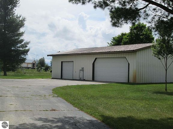 Great location 3/5 miles from Kalkaska 5.24 acres, attached garage, 20x28 heated and 30x40 pole building with 8 and 10' doors also hook-up for motor homes, camper or mobile home site, perfect for company or family. House also features central air and sprinkler system and very spacious rooms.