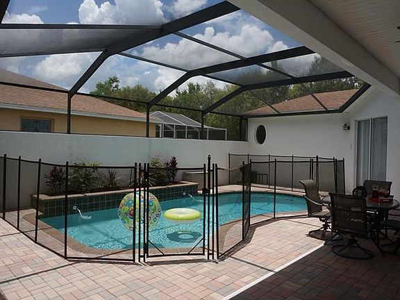 Beautiful "Florida Leisure" design home in desirable Carillon Lakes Community. Easy access to the Parkway and I-4. This unique home has a separate guest suite, large master suite and a main wing that surrounds the very private 800 square foot pavered pool/lanai area. Many upgrades include granite countertops, cabinets, stainless steel appliances, and 9 foot ceilings throughout. Some updates include new paint throughout, new carpet, refrigerator, dishwasher, washer, dryer, and master shower. Backyard backs to a conservation area which means no rear neighbors! Gated community amenities includes large pool and hot tub, new children's playground, basketball courts, tennis courts, gym, and trails around several lakes throughout the community.