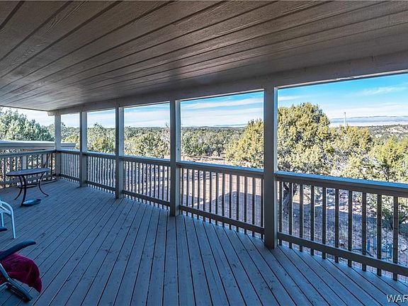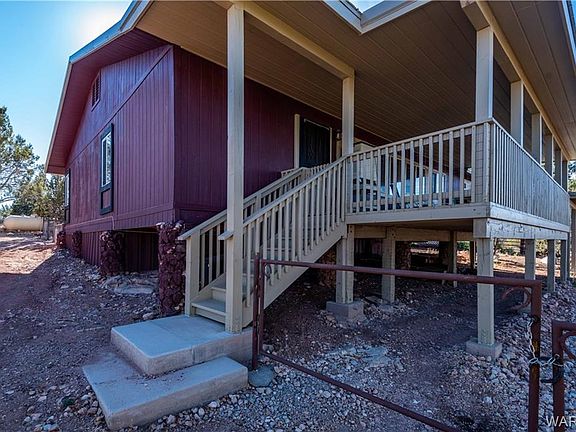 Cabin overlooking Route 66 from a tall Mesa high in the trees, with rolling hills, and views for MILES. This 2 bedroom 2 bath cabin with Den, could easily be a 3 bed 3 bath if you need the extra bedroom. Huge living room with a centerpiece fireplace and several thermostatically controlled propane heaters keep this get-a-way toasty even when you are gone all day. Back entry room is a huge room with a craft area, laundry area, a second dining room and a perfect dog room for your loved ones who might not be wanted in the kitchen. This home has LOTS of usable space. Master bedroom is unusually large for a cabin with an attached half bath; and is adjacent to the large full bath. Kitchen is open to the great room so the cook stays engaged with the activities. The front patio looks down across Route 66; and you can see the train from a far distance with the Music Mountain range as the backdrop truly stunning. The covered patio is very inviting and looks like lots of good times have occurred there! LOTS of room for animals, guests, or just elbow room. Currently there are horse facilities set up on the property with a large hay barn for dry storage and two small run-in s which have been used for horses and goats over the last few years. Systems are first rate, Outback inverter, 16 T105 batteries (3yrs old and well maintained); Outback charge controller and what looks like close to 2kW of generation (must be verified). Lots of water storage on this water haul property; a 3500g storage tank for the residential use, and a 1500g separate tank for the animals. There are several available delivery companies or you can haul your own.
