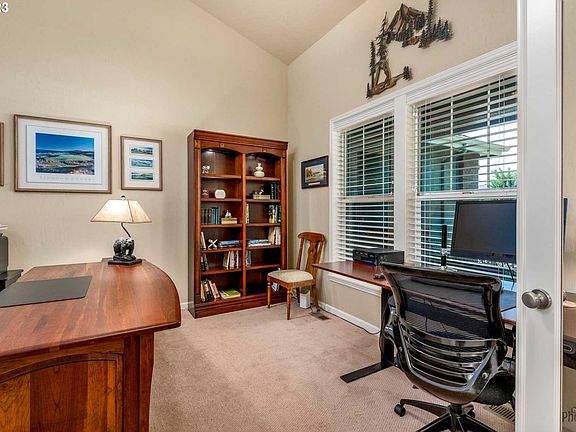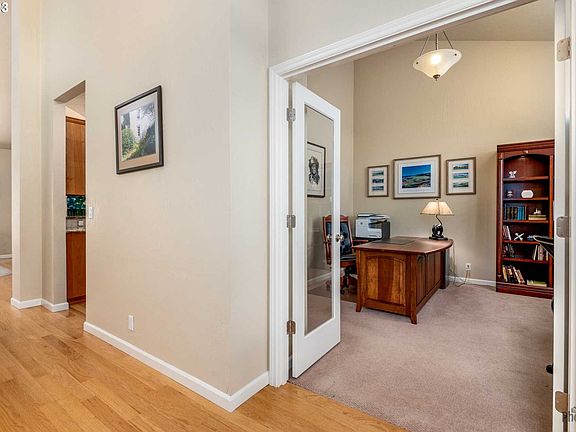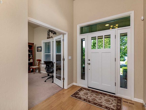 Butler Homes Model Home! Every detail has been considered for easy living with casual elegance. This Butler built, one owner, one level home offers an intuitive floorplan design with abundant upgrades. The home greets guests with a stunning Lace-Leaf maple draped over the custom water feature. The interior entry introduces the homes interior with high ceilings, an expansive bright entry and light oak hardwood floors. Inside find the oversized great room to maximize daylight and privacy. The primary suite is tucked in the back of the home to provide maximum privacy while offering direct access to the hot tub through the suites French door. Additional living space includes two large bedrooms with a dedicated full-bath, providing separation for guests, adult children or care providers. Behind the glass, double French doors is the quintessential home office. Easy living comes with built-in vacuum system, surround sound extending out to the covered patio in back, a third bay in the garage for hobbies, workout space of additional storage. The home is tucked amidst a beautiful neighborhood and is in close proximity to dining and shopping.