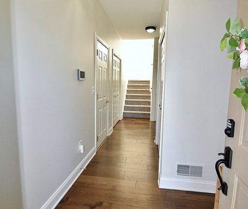 Welcome to this stunning townhouse in the desirable Aurene subdivision! Enjoy modern living with new appliances, a new ADT security system, and beautiful engineered hickory flooring. The first floor boasts vaulted ceilings and new fixtures throughout, including an all-new half bath. The kitchen is seamlessly open to the dining and living rooms, with a deck off the dining room featuring a retractable awning. The spacious master suite offers a large walk-in closet and a luxurious bathroom with a dual vanity, walk-in shower, and whirlpool tub. New carpet graces the basement stairs as you go down to the office and laundry areas. Plenty of space for you to make your own. Don't miss this gem!