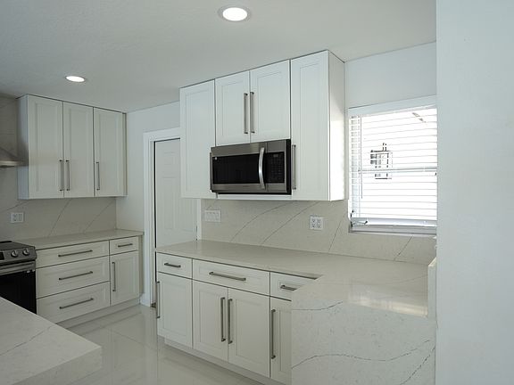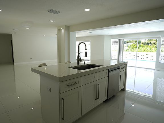 Gorgeous Fully Renovated Pool Home in Forest Lakes! This stunning 3-bedroom, 2-bathroom home with a 2-car garage and private pool has been completely remodeled from top to bottom and is ready for its new tenant! Step inside to an open floor plan featuring sleek porcelain tile throughout the main living areas and easy-care luxury laminate flooring in the bedrooms. The spacious living room offers beautiful views of the pool through sliding glass doors, creating a seamless indoor-outdoor living experience. The modern kitchen boasts wood cabinetry, stainless steel appliances, granite countertops, and a functional island perfect for cooking and entertaining. The primary suite features a generously sized bedroom, custom walk-in closets with barn doors, and a spa-like bathroom with dual vanities, LED anti-fog mirrors, and a luxurious walk-in shower with dual rain shower heads. This split-bedroom layout is enhanced by recessed lighting, vaulted ceilings, and a bright, airy atmosphere throughout. Enjoy Florida living at its best in the large, fenced backyard with a sparkling pool ideal for relaxing or entertaining guests. Additional features include a new tile roof, new A/C system, hurricane shutters on all windows, an oversized driveway, and a 2-car garage with a laundry area. Don't Miss This Opportunity! Schedule your private showing today this home won't last long! Owner pays Electric, Water, Pool Maintenance and Yard work