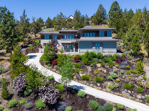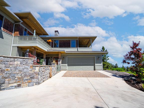 Easy access to stunning views with this climate controlled heated driveway. An exceptional, Frank Lloyd Wright inspired home, sits on 0.35 acres, offering stunning easterly views & a peaceful sanctuary adjacent to the Rivers Edge golf course. Built in 2015, the home features 4 BR, 3 full baths, and 3,562 sqft of living space. The heart of the home is the inviting great room w/ a striking stone-faced fireplace, perfect for gatherings. Multiple outdoor balconies and patios invite you to unwind in the serene natural surroundings. The lower level offers versatile space, from living areas to a workspace or art studio. Charming antique hardware accents blend seamlessly with marble and granite countertops, exuding elegance throughout the property. Enjoy the convenience of an interior elevator, hot tub & sauna, providing the ultimate in luxurious living. This energy efficient home boasts a remarkable home energy score, ensuring sustainability w/out compromising comfort.