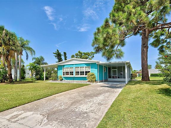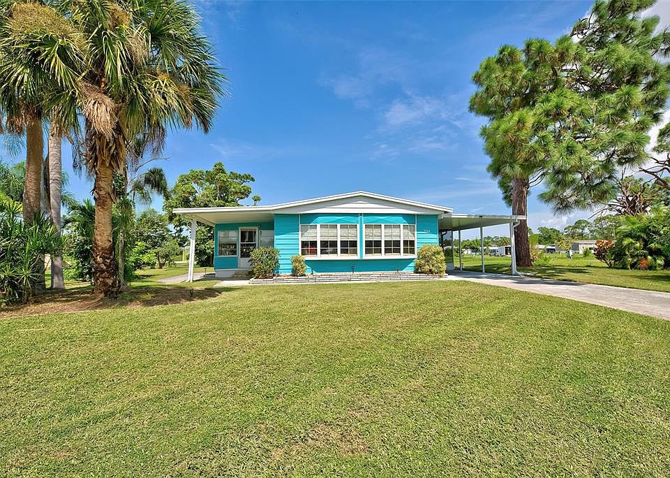 Welcome to Sandalhaven Estates in lovely Englewood, Florida. A 55+, Deed-Restricted, Pet friendly, Golf-Carts allowed, Manufactured Home Community. YOU OWN THE LAND and NO LOT FEES. Very reasonable annual HOA dues of $200.00. Presenting this MOVE-IN READY Manufactured Home. 2/Bed, 2/Bath, w/Glass/Screened Porch and Carport w/Screened Lanai. Built in 1980, 1104 sq ft. (heated and cooled)- 1304 total sq. ft. BEING SOLD FURNISHED. Open floorplan, so light and bright. Front of home has a "wall of windows" with charming window seating. OVER 69K IN UPDATES HAVE BEEN MADE!! Insulated Metal Roof (2022), Carport and Lanai (2023), 12x9 Attached Shed, Gutters/Downspouts (2023). Interior impresses with a warm, coastal vibe. Newer luxury vinyl wide plank flooring throughout most of the home. Newer ceilings and walls in Primary Bedroom, Dinette, Kitchen, Dining Room and Living Room. All have newer ceiling fans. Kitchen sports granite counters and teak butcher block. Ample cabinetry-that's newer too. Dinette has built-ins for expanded storage space. Primary Bedroom/En-Suite are a winning combo. Updated primary bedroom is so roomy and the walk-in closet is HUGE! 2nd bedroom has a built-in closet that spans one wall and sliding glass door that leads to the side porch. Large side porch expands the living area with both windows and screens. Set-up to create the perfect space for lounging or entertaining. Outside the side porch is a nice concrete pad for grilling out. Carport, partially screened with tile flooring, adds to the "usable outdoor space". Lush, tropical, serene. Take the time to tour this unique property. Located close to Boca Grande and Englewood Beach. Fun local eateries are close by, sit outdoors, sip a cold drink, listen to live music and enjoy the breezes. An added bonus for the area- the newly widened sidewalks on Placida Road helps make Walking, yourself or the dog, Biking, Running-so much fun. BEAUTIFUL DAYS, BEAUTIFUL NIGHTS, BEAUTIFUL FLORIDA!