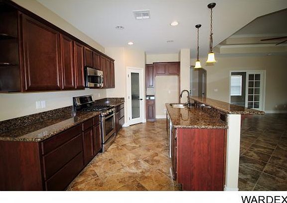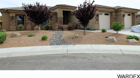 This gorgeous 4 bedroom 3 bath executive home with a salt water heated gunite pool in Hualapai Shadows is like new and move in ready. Built by Cantrell Development it has granite counter tops, upgraded cabinets, SS appliances, gas range/oven and large pantry. Tile floors throughout with carpet in the master and two other bedrooms. Gas fireplace in living room. Dual sinks, separate jetted tub and walk in tile shower in master en suite. In the back this home boasts a spectacular yard with an outside gas fireplace, large extended covered patio with spa, built in screen TV and gas BBQ cook center as well as your in-ground gunite pool with electronic auto safety cover and water fall. A perfect home to entertain while enjoying family and friends. The dramatic front entry with impressive front door is interior to a gated front courtyard with flower beds. 805sf two and half car garage. Home can easily be used as 2 masters and 2 offices. 75 gal. hot water heater with re-circulation pump. Nest thermostats on your HVAC system enables monitoring or temperature adjustment from anywhere with your cell phone. Home is hardwired for security and has storm security doors on all exterior doors.