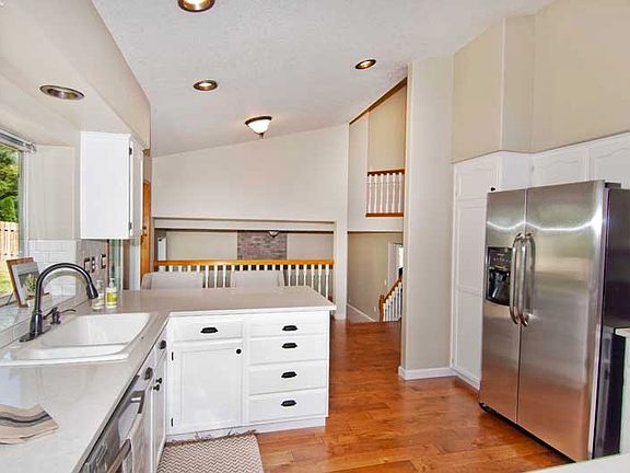 Remodeled Tri-Level in Summit Estates. New Handscraped Maple Hardwoods. New carpet in cozy sunken family rm with pellet stove. Kitchen features white Quartz countertops, subway tile backsplash, new stainless appliances. Cedar roof treated in last 45 days. Master Suite flooded with natural light, walk-in closet, spa tub w/shower. 4th Bed/Office/Bonus w/closet. 3 Car garage. Air Conditioning. Sprinkler System. Private backyard with shed. RV Parking.