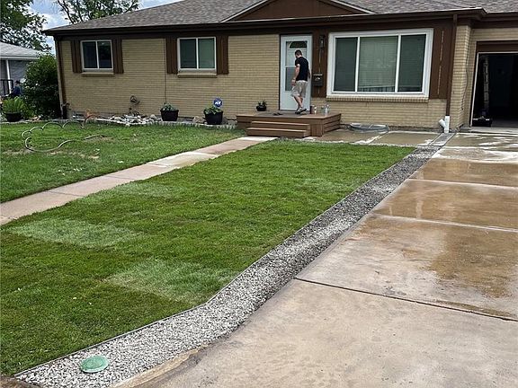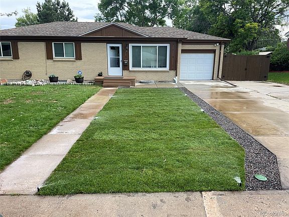 Welcome Home !!! This charming, recently updated brick ranch is located in the highly sought-after Centennial Acres neighborhood. The open floor plan allows for a natural flow between the expansive kitchen, living, and dining areas, which open to a covered back patio with a well-maintained backyard, featuring mature fruit trees and a garden. The home features a well-appointed kitchen, a central kitchen island, quality thick granite countertops, and full wood kitchen cabinets with modern hardware, and stainless steel appliances. The main floor is open, light, and bright, perfect for entertaining! The fully finished basement has a brand new laminate floor (moisture /mold resistant), a fresh coat of paint over the wood paneling, 2 bedrooms, 3/4 updated bathroom. laundry area, and ample storage throughout. There is a freezer in the storage basement which also stays with the property. The ample basement main room can serve as a game room, home theater, or exercise room - due to its generous size and layout. Recent updates include a new water line to the street, a fresh coat of paint, and many modern and practical features. Located just minutes away from Target, Costco, great restaurants, and plenty of recreating options with the nearby Centennial Park. Enjoy easy access to the historic Littleton Downtown, Platte River walking and biking trail, Centennial Park, Santa Fe Drive, and Highway 285. A move-in ready, inviting space is awaiting its new owner. Within walking distance to a bus stop. Nestled in a quiet residential neighborhood, yet close to all the city amenities.  Come and see for yourself!
