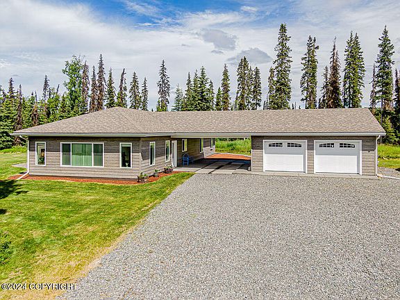 HAVE YOUR CAKE & EAT IT TOO, Custom Ranch Home built in 2011 w/KENAI RIVER ACCESS, 2468 sf of Living Space & OUTDOOR BRICK FIREPLACE to enjoy after a long day of Fishing on the Kenai. House was designed by the original builder for his family, Granite Kitchen Counters, Whitewashed Oak Floors, Guest/Media room in the Back Wing with it's private entrance that you could easily make into a Rental. **Enjoy the Great Outdoor Views everywhere you look. The property features floor to ceiling windows in the Master bathroom with 'soaking tub', where your only view is Privacy and the Great Outdoors. Master bedroom has it's own private entrance, a 2nd kitchen set up and Media Room with additional sound proofing. The home features 3 total bedrooms, 2 baths, Great Room in the front, Whitewashed Oak Floors, Chef's Kitchen w/Island, VIKING RANGE, Dark Wood Cabinetry, Inset Can lighting, breezeway to the 2 Car Heated Garage, Extra parking pad and a Short Walk to RIVER ACCESS ON THE GREAT KENAI RIVER!