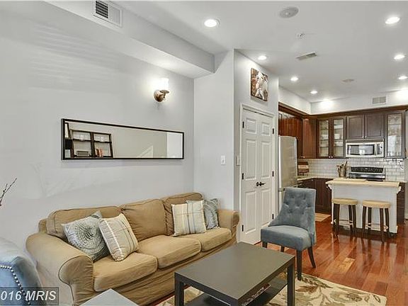 Two bdrm condo feels like a house! Sunny liv rm w/ beautiful bay window, cherry fls, recessed lights & 1/2 bath. Cherry kit cab, granite, stainless appl and tile backsplash. The Master bed w/ exposed brick & access to the rear porch for relaxing and grilling. An additional bedroom, full bath and stacked w/d. Self-managed, pet friendly, low fee of $128 per month. Close to Metro & Shopping/Dining