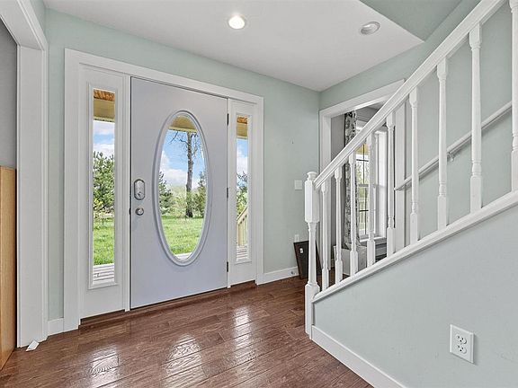 This exquisite country residence offers a haven of comfort and elegance with sweeping views of the surrounding landscape. Step inside to discover a main level adorned with gleaming hardwood floors, featuring a spacious kitchen, formal dining room, living room, TV room, and convenient half bath. The kitchen, showcases custom-built cabinetry by Heartland Designs, granite countertops, a breakfast bar island, and stainless-steel appliances. Upstairs, the master bedroom awaits, boasting plush carpeting, a walk-in closet, and vaulted ceilings. Its attached bathroom is a luxurious retreat, complete with a sizable walk-in shower with dual shower heads, tile flooring, double sinks, granite counters, and bespoke cabinetry. Additional upstairs accommodation includes three bedrooms, another full bath, and a laundry room. The finished lower level offers versatile living space with two family rooms, an office/study with a lower egress window, and a mechanical room with ample storage. Above the garage, a charming guest suite awaits(non conforming), boasting carpeted floors, separate heating/cooling, and abundant natural light. Outside, the allure continues with a picturesque wrap-around covered porch and a southwest-facing deck with a pergola, perfect for enjoying the serene surroundings. The meticulously landscaped yard is a veritable paradise, featuring a blend of young and mature trees, as well as a long list of edible plants! Adding to the property's appeal are five charming barns, offering both practical storage solutions and rustic charm. Buyers to verify school district.