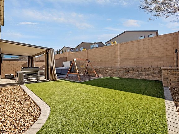 MEGA OPEN HOUSE on SATURDAY 3/4 from 1pm-4pm! Move-in ready in heart of Inspirada, West Henderson! Imagine coming home here! First floor features open concept kitchen, dining, living room and half bath. Kitchen has oversized island w/rich, espresso cabinetry and white quartz countertops, black SS appliances, built-in wine fridge, and pantry. Kitchen opens to dining/living room and oversized 12ft sliding door opens to backyard - which is an entertainer's paradise! Backyard boasts true outdoor living w/a 10 person hot tub which can convey w/full-price offer; custom pavers and awning with turf wraps around to the private, front paved courtyard. A lot PERFECT for hosting and enjoying our beautiful Southern Nevada weather! Upstairs you'll find the primary suite to include custom pendant lighting on bedside w/walk-in closet + primary bathroom complete w/walk-in shower, rain shower head and LED mirrors. Second and third bedrooms share full bath. Laundry is easy w/room on second floor.
