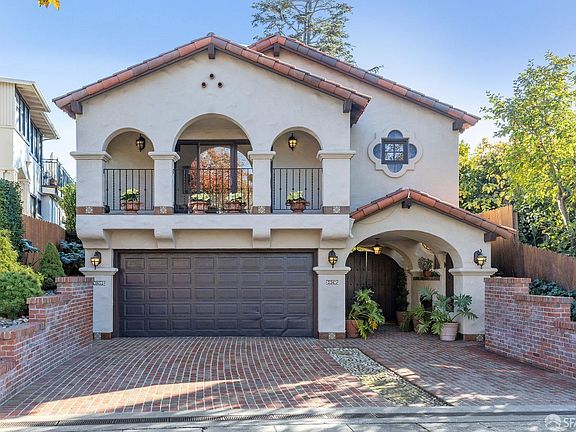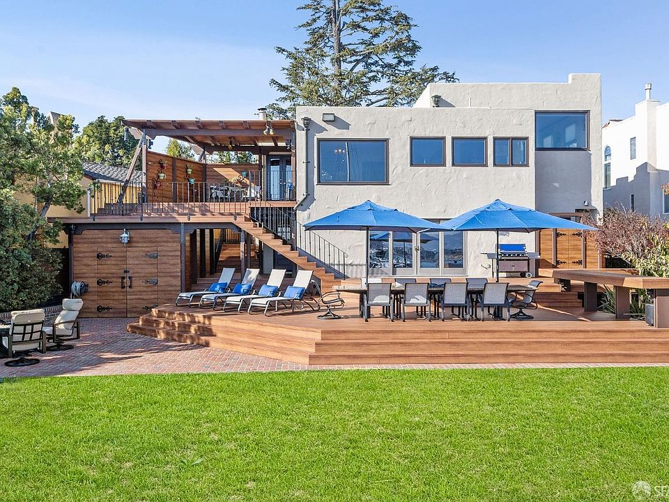 Luxurious waterfront living. This gated Mediterranean style oasis features two buildings nestled amongst generous open space and a deep-water dock with boating access to San Francisco Bay. Enjoy a hot outdoor shower after sailing, kayaking, fishing, or rowing in the sheltered waters of the Alameda Esturay or relax in solitude while watching migrating pelicans, egrets, and blue herons from the modern aluminum pier. The gardens are well established and with seven citrus trees organic fruit is abundant. A renovation of the four-bedroom main house was completed in 1995 along with new construction of a two-bedroom guest house/apartment above a four-car garage. The unified architecture of the two buildings creates a harmonious compound built to modern resource efficient standards complete with a projection room and secluded courtyard featuring a three tired fountain. Keep your 70-foot yacht within your titled property on the ample 24,905 sq ft lot. Bike to shops and restaurants on Park Street or drive in minutes to downtown San Francisco. Located in the highly desirable Edison School district, rarely does such a significant waterfront property on San Francisco Bay become available.