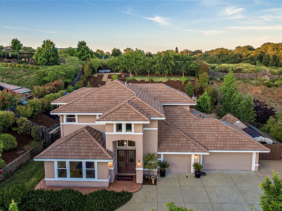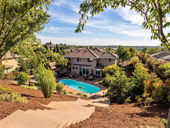 Sierra Foothills Living! El Dorado Hills/Rescue! Gorgeous offering! Desirable Sierra Crossing community! Immaculate! 1/2 acre backs to open space! Views El Dorado Hills oak canyons & GLORIOUS sunsets! Top quality! Junior master suite downstairs! Gorgeous use of stunning custom black glazed Knotty Alder cabinetry & granite thru-out residence! Formal living and dining, and Grand Great Room that overlooks private b-yard! Gourmet kitchen with $20K+ commercial stainless appliance package, brkfst bar, prep island, & 2 sink stations! Four room Master Suite with HUGE dual shower & WI closet! Room size tech center! Two heat and two air high energy efficient units! 8' deep sparkling pool with solar! Large stamped, colored patio for your summer enjoyment! Finished garage, drop-down staircase, granite epoxy floor, workshop, & tool crib room! Large new shed!Ample parking for vehicles/boat/small RV! MUST SEE 3D Floor Plan Tour!! Extensive features list available! Low $45 HOA! NO Mello-Roos!
