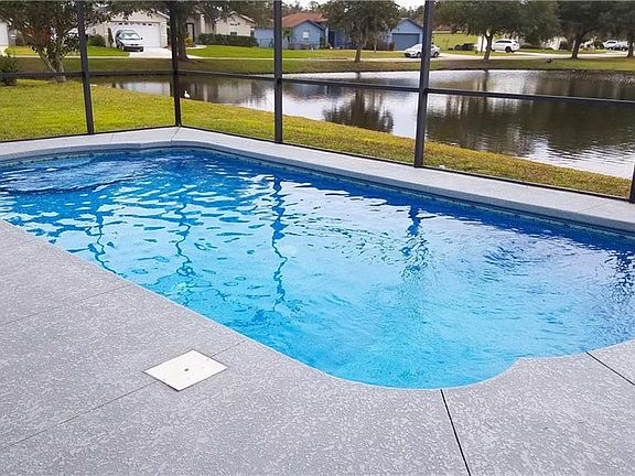 Beautiful 3 bedroom, 2 bath pool home with stunning Lake Views. Home features a spacious living room, family room, formal dining room, and dinette with vaulted ceilings. Kitchen features all new stainless steel appliances and lots of counter space. Living area features all new vinyl plank flooring. Large master bedroom overlooks lake with a garden tub, separate shower, and dual sinks in the master bathroom. 2 car garage and inside laundry room. Double doors in the dining room opens up to the lanai area and pool. The large lanai gives plenty of room for entertaining or just relaxing. Pool features child safety net and property has no rear neighbors! Exterior and pool deck have been freshly painted. Pool care included in rent. Homes is also listed for sale MLS#L4905880. Sorry, no pets.
