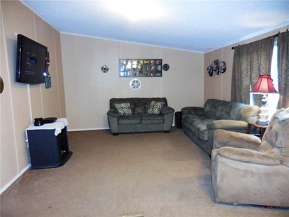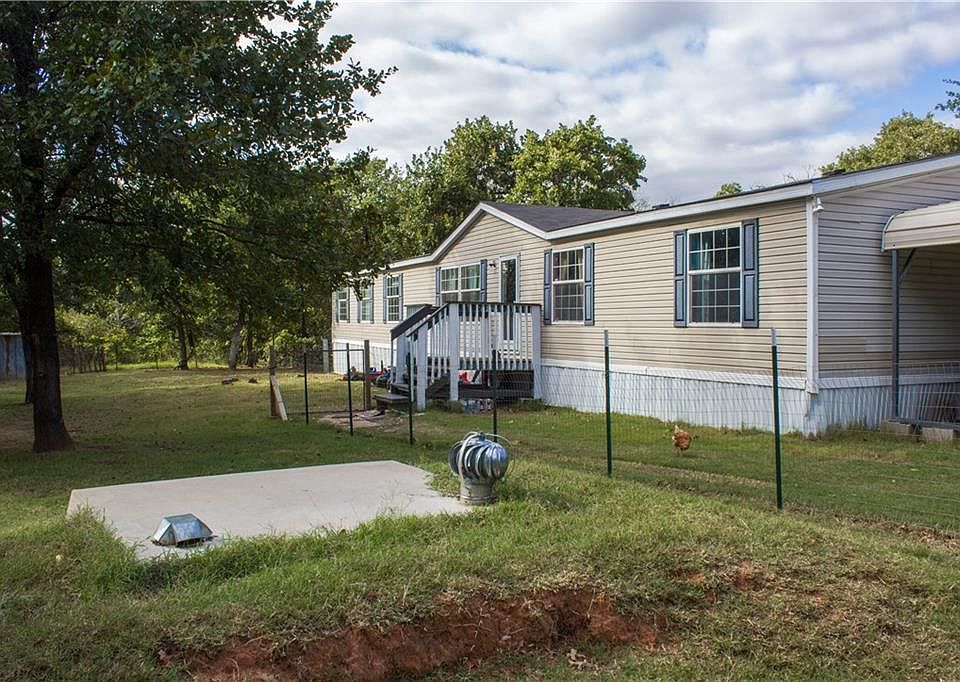 Great 2003 Fleetwood Mobile sitting on partially wooded 2.5 acres, livestock allowed. 6 person storm shelter on premises with brand new door and hinges. 4 bed 2 bath, 2 large living areas. All electric. Well and septic. Well pressure switch and pressure gauge replaced recently. Large master bath with a double vanity and large walk in closet. Second bath has double vanity, tub shower combo. Laundry room has lots of storage. HVAC system was replaced last year, hot water tank is 3 years old. Flooring has completed redone. Brand new front porch. Partially fenced. Carport. On concrete piers and anchored. Brand new dishwasher and new refrigerator.