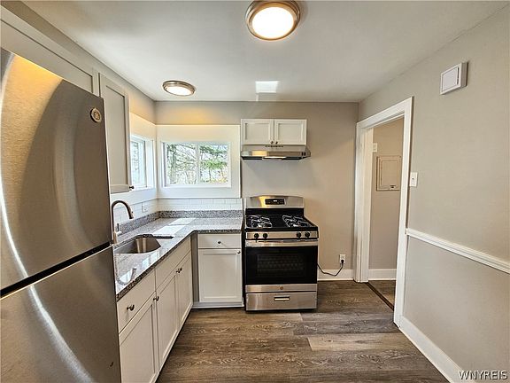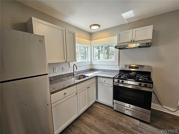 NO MONEY DOWN! Completely updated, 3-bedroom located in the Sandy Beach neighborhood with private beach access on the Niagara River. Features include kitchen with granite countertops and stainless steel appliances, spacious living room, and dining room with a built-in hutch. Lives like a ranch with 1st-floor bedroom, full bath with tile surround, and 1st-floor laundry. Additional open room with closet for extra storage. Stairs lead up to large loft area that would make a great playroom or office, and 2 roomy bedrooms with ample closet space. Partially fenced in backyard.