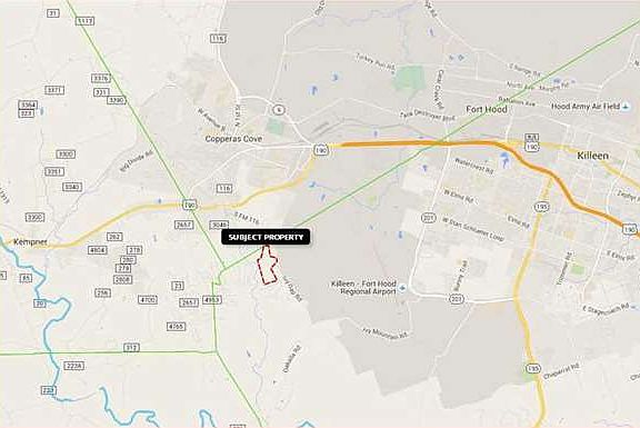 Development land in Copperas Cove, TX . 215 +/- Acres of prime development land in Bell County, Copperas Cove, TX. This prime development track fronts Ivy Gap Road .9 miles from the Copperas Cove city limits, 2.2 miles from the new Hwy 190 loop and located within the Copperas Cove ETJ. The subject property is less than 10 minutes from Fort Hood and Killeen-Fort Hood Regional Airport. Located in Copperas Cove ISD. Kempner Water Supply and TXU electric on the property. Land has large mature live oak, pecan and elm trees with diverse topography.
