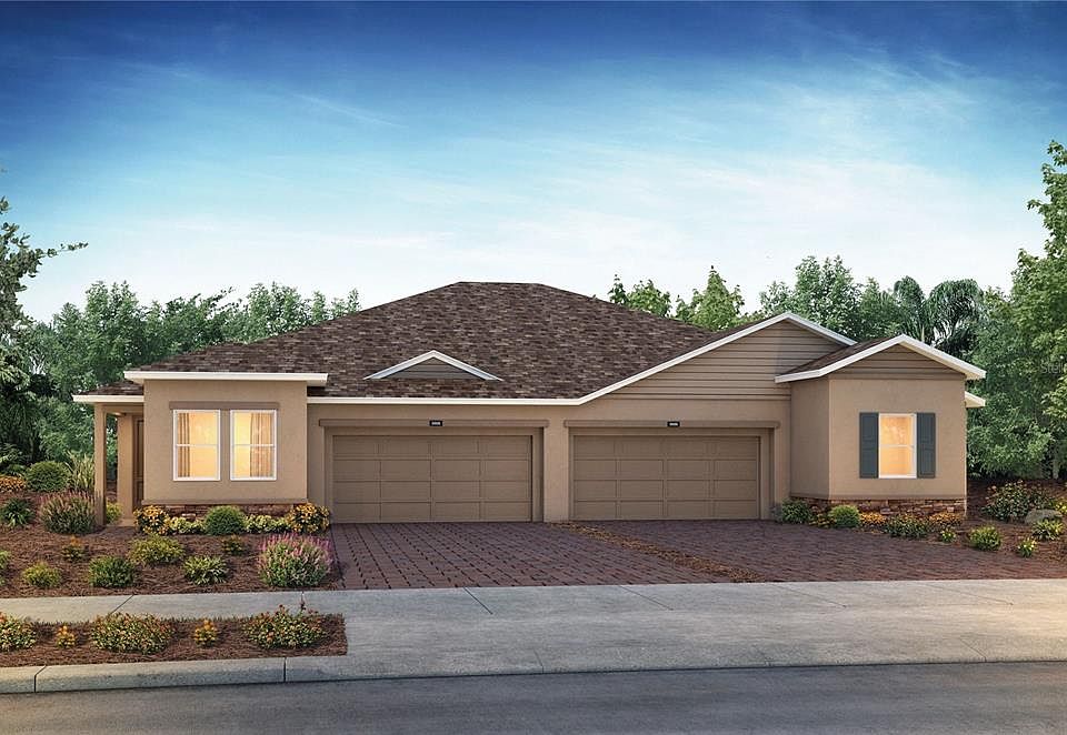 Under Construction. Spectacular OPEN CONCEPT home nestled on a premium homesite with NO REAR NEIGHBORS, close to the golf course. $74,000 in builder options and upgrades include plank tile floors throughout, upgraded glass front door and 8’ doors, and rounded corners throughout. The screened, covered Lanai lets the outdoors in and expands the space for entertaining. The kitchen and bathrooms include Quartz countertops and abundant soft close, dovetail cabinets and drawers. Trending backsplash adds to the elegance—all stainless-steel appliances, including a NATURAL GAS RANGE, and even the refrigerator. The Primary Bedroom has a spacious ensuite with dual sinks, a step-in shower with heavy glass enclosure, beautiful tile all the way to the ceiling, a private water closet, a linen closet, and a walk-in closet. The second bath with a BATHTUB flanked by the second bedroom and den/office. A separate Laundry room includes a washer and Natural gas Dryer. SMART HOME AND BUILDER WARRANTY! Ocala Preserve is home to an epic resort lifestyle with an innovative golf course and an incredible Resort Club. The 17,000-square-foot Oak House offers incredible amenities and unique spaces for connection, relaxation, fitness, and daily discovery. Expect to be impressed the moment you enter the guard-gated Welcome Center and experience the breathtaking beauty. The Oak House has a Fitness Center, Resort Day Spa, Heated lap pool, and outdoor heated pool. There is a full-service Restaurant and Bar, Art Studio, Card Room, Culinary Kitchen, and member-led clubs. Outdoor sports include Golf, Trail Systems, Avid Fit Pod, Fishing, and Water Sports. Enjoy friendly competition, Pickleball, Tennis, and Bocce. Pamper yourself at the spa. The community is conveniently located less than 15 minutes from the World Equestrian Center, Shopping, and Dining. There is an additional monthly fee in the amount of $117.33, which covers the Roof, Exterior Paint, and periodic Power Washing. There is NO CDD. Company (#CQ1034437); Construction: SHALC GC, INC. (#CRC1332250). Some homes at Ocala Preserve are intended for occupancy by at least one person 55 years or older, with certain exceptions, and others are open to all ages. This is not an offer of real estate for sale, or a solicitation of an offer to buy, to residents of any state or province in which registration and other legal requirements have not been fulfilled. The picture is a rendering, not the actual home which is under construction.