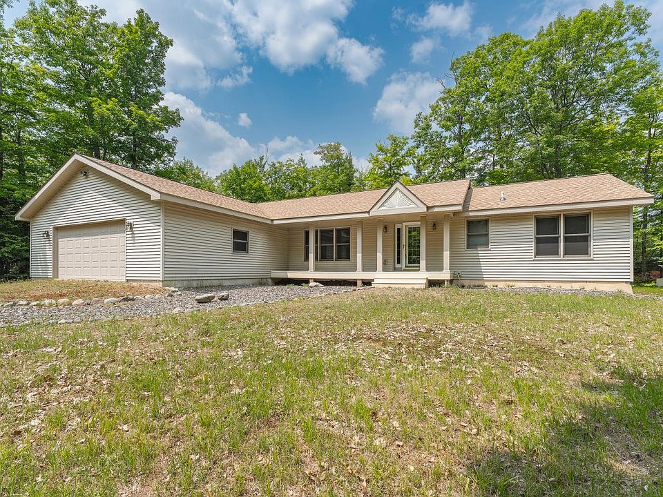 Have you been looking for an Eagle River Chain home with no luck? Here is a chance at the Chain Life without the huge price tag! With deeded access to Cranberry Lake (complete with boat slip) this 1,680 sq. ft. 3BR/2BA home complete with a full unfinished basement and 2 car garage is up for the taking. The house sits on 2 quiet private acres, just a short golf cart/UTV ride down to the 10+ acre, 750’ of shared frontage deeded access parcel. The 2008 built home is cute as can be with an open concept kitchen/living/dining. The owners En Suite is on its own wing with a huge private bath and walk in closet. The other 2BRs/1BA are located on the other side of the home while the full unfinished basement houses the utilities and is stubbed in for a 3rd BA. With just a little bit of landscaping, the “wow” factor would be here. Not to mention, BANG for your BUCK!