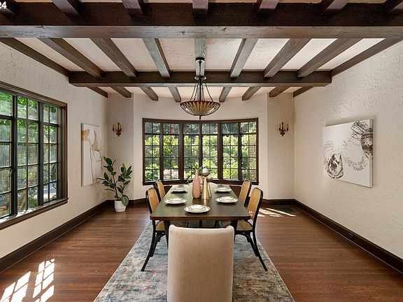 This meticulously maintained Arts & Crafts estate, nestled on a rare .36 acre flat lot in the Southwest Hills neighborhood. Built in 1930 and spanning an impressive 6,376 sq ft. This timeless home offers 5 bdrms, incl two spacious bdrm suites providing ample space and privacy for all. Modern updates blend seamlessly with period details throughout, including a remodeled primary suite that boasts luxury with a remodeled bathroom and four double entry oversized closets. Additional highlights include an accessory dwelling unit (ADU) with a separate entrance, complete with a kitchen, full bathroom, W/D and ample living space. [Home Energy Score = 1. HES Report at https://rpt.greenbuildingregistry.com/hes/OR10230027]