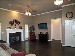 Country like setting minutes to shopping & entertainment. Offering flexible living in this 1.5 story home on 1 acre. Features 3 bed plus study down,upstairs bonus room & 1/2 bath & walk-in closet for an optional 4th bedroom. Great master bed & bath,double vanities, walk-in shower & jetted tub just top the list of amenities including new SS appliances, tastefully stained concrete flooring, nice woodwork, spacious mudroom, surround sound, large storm shelter & oversized 2 car garage.