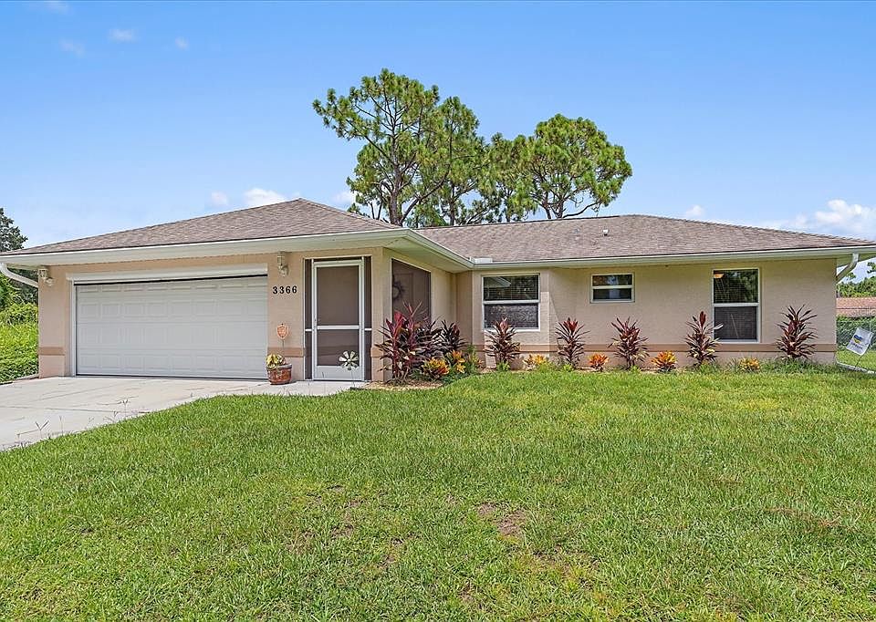 Look no further for the opportunity to live in North Port! This 3 Bedroom, 2bath, 2 car garage split plan home with a covered Lanai all seasons room, Fenced backyard is ready for the new owner! The floor plan is open and airy with tall cathedral ceilings, spacious living room and eat- in Kitchen with sliding doors leaking out to the Florida room. The kitchen has 36inch wood cabinetry, solid surface counters, stainless appliances. Perfect set up for entertaining family and guests. The main living areas and all 3 bedrooms have ceramic tile flooring and ceiling fans through out. The master bedroom has a large walk in closet and it's own master bath with walk in shower. On the opposite side of home you'll find 2 guest bedrooms with great natural light. This wonderful home has a 2 car garage and a new hot water heater. The back yard has a white vinyl privacy fence along the back with chain link on both sides. A short drive to your local Publix, hospitals, shopping, dining, parks, new water park, Braves Stadium, spring training facilities and much more! The location is fabulous with quick easy access to I-75 for commuters. Just a twenty minute drive to the beautiful white sandy gulf beaches. Call for an appointment today!