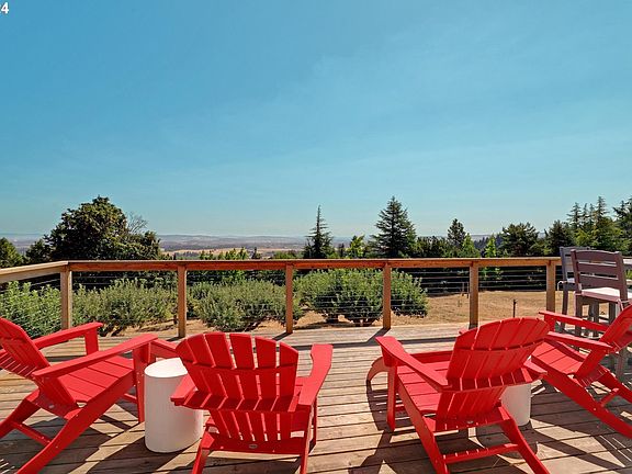 Welcome to your dream retreat! This 5-acre property offers breathtaking views of 5 mountains: Hood, Rainier, Helens, Jefferson, and Adams and a serene valley. The remodeled 4-bedroom home boasts an open floor plan filled with natural light, highlighting the beautiful surroundings. The updated kitchen provides a large island and modern appliances. Outside, enjoy a lush garden, 7 planter boxes and a brand-new irrigated greenhouse for year-round cultivation. Two versatile outbuildings include one designed for chickens and goats and another with electricity and a cement floor, ideal for a workshop.Wake up to the tranquil valley, sip your morning coffee on the expansive deck, and watch stunning sunsets over the mountains. This property is more than a home; it's a lifestyle. Don't miss this rare opportunity.