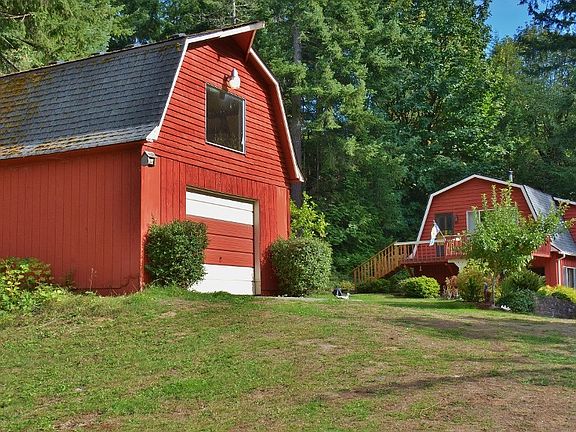 Warmth & character take center stage in this hilltop barn style home. Beautiful grounds surrounded by evergreens & yet mature plantings of Rhododendrons, maples, fruit trees, hydrangeas & more! Americana inside & out! Great spaces, easy living & intriguing possibilities! Huge shop for all your hobbies or parking the RV + detached garage w/loft space! Easy access to schools, services & Hwy 16; it is a package of value & potential nicely wrapped in superb perspective! Country living at its best!