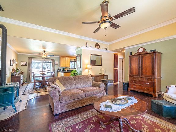 HORSE CORRALS!!! Here's the perfect horse property sitting on almost 5 acres. Totally fenced property with a cute 3/2 upgraded house. Vaulted ceilings, crown moldings, wood & tile floors, and upgraded kitchen makes this house the perfect place to live. Great drinking water well provides all the water needed for your animals.