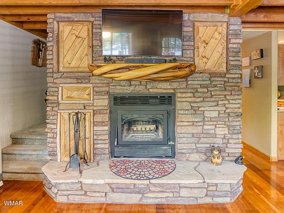 PERFECT, Cozy Cabin located in the highly desired Pinetop Lakes Country Club with Rec. center privlidges! This 3 Bed / 2 Bath home is surrounded by soaring pines and has true pride of ownership! This cabin has been beautifully remodeled and upgraded inside and out, including added natural gas, 2 new decks/patios with trex decking and new log railings, and a 1-car garage! The Kitchen has stainless steel appliances, Knotty Alder kitchen cabinets, and plenty of countertop space. The custom stacked stone wood burning fireplace w/ insert with storage areas will warm you right up on those cool mountain nights and the 3 decks are perfect for entertaining! Off of the back private deck there is a flagstone path that leads to a paver patio complete with a natural gas firepit. Read 'more' FURNISHINGS available for $4000.00 outside of escrow. See list of items that do NOT convey.