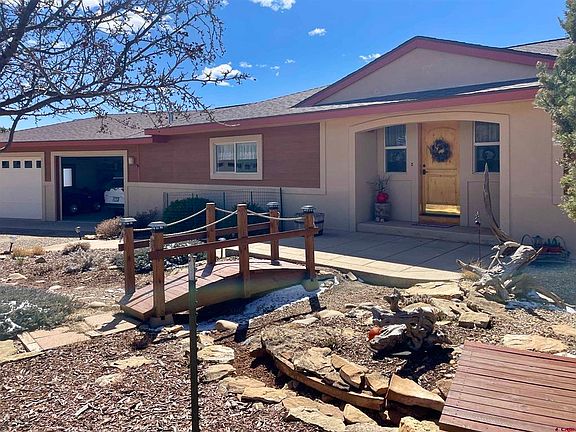 Beautiful Northwest style craftsman home consisting of 2,679 square feet, 3 generous bedrooms, 2 baths and an oversized 2-car garage. Stacked rock double-sided fireplace for the living and dining rooms, new tropical oak engineered hardwood flooring, expansive windows framing the mountain views, newer room darkening blinds throughout, aspen tongue and groove raised ceilings, newer GE stainless steel appliances with a 6-burner gas range, hickory cabinetry with pull out shelves, cooks island and granite tile. In-floor radiant heat throughout the home, spacious master suite with 2 walk-in closets and a 5 piece bathroom featuring a walk-in shower and two-person soaking tub. Covered patio is situated to take in the sunrises over Mesa Verde and sunsets over the Sleeping Ute mountains. Property is very quiet and borders BLM land with single-track trail riding known as Chutes and Ladders. Dream shop with 1,692 sf has a half bath and is fully insulated with high overhead door to store your RV inside. 55,000 BTU heater keeps it comfortable and includes plenty of storage and work benches. Includes storage shed and a circle driveway for ease of parking with trailers or extra guests. The property is carefully landscaped for easy care, trees and shrubs are on an automatic drip system, small pond with waterfall and even a wishing well! Properties in Kernan Creek Ranch rarely become available, with it's promixity to Mesa Verde National Park, Durango, CO narrow gauge railroad, skiing at Durango Mountain Resort, Trimble Hot Springs and the San Juan National Forest.