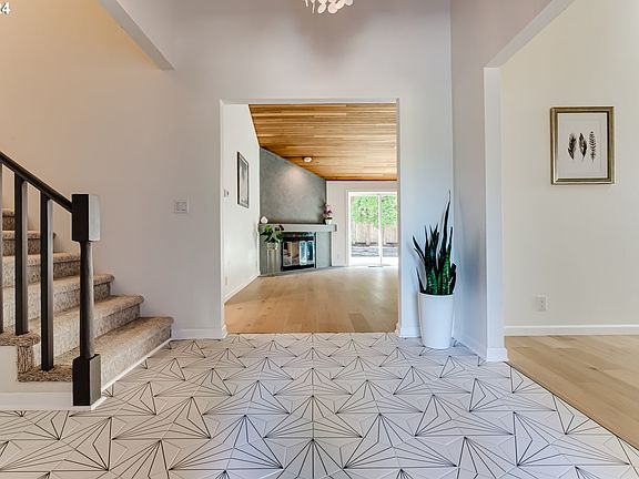 Experience mid-century modern charm with this beautifully remodeled 4-bedroom, 3-bathroom home. Upon entry, the porcelain geometric tile transforms the entrance into a piece of art setting the tone for the entire home. As you explore this inspirational home, you'll be captivated by the vaulted ceilings, stunning pendant lights & premium oak engineered floors that create an ambiance of elegance & openness. The main-level primary bedroom suite is a true sanctuary with a bay window seat for reading & relaxation along with a spacious walk-in closet. This suite also features a luxurious bathroom with a freestanding bathtub, double shower heads, double sinks & exquisite designer wallpaper. At the heart of this home is the living room, offering warmth & comfort with its open floor plan, vaulted ceiling & inviting fireplace. The kitchen is a culinary masterpiece boasting stylish cabinets, a large island that doubles as an eating bar, striking ribbed porcelain wall tile & top-of-the-line appliances including a Samsung gas stove & Samsung Bespoke refrigerator. The open kitchen flows effortlessly into a bright expansive dining room, illuminated by two skylights & a vaulted ceiling. Upstairs, 3 spacious bedrooms await along with an updated bathroom. Retreat to the backyard oasis to unwind on the covered deck & enjoy the dedicated garden area with raised beds perfect for outdoor living. Nestled in a walkable, community-oriented neighborhood close to parks, this captivating home seamlessly blends modern living with everyday functionality, creating an ideal indoor-outdoor living experience. Discover all this home has to offer. Check out the Video Tour! There's so much to love here!