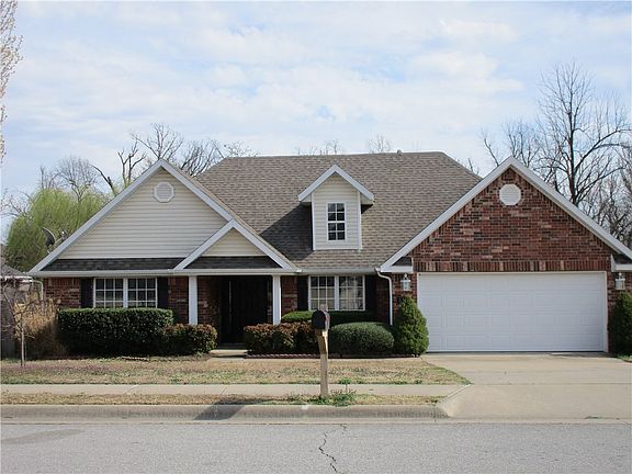 Looking for a home walking distance to the Razorback Regional Greenway bike trail? This 3 bedroom, 2 bath home is in Eagle Crest subdivision, which is adjacent to the Greenway. Lake Springdale, Spring Creek, Thunder Chicken mountain bike trails, JB Hunt park and Hunt Elementary School are a short bike or walk away via the trails. The property has great curb appeal and nice space with a raised garden out back. Relax on the new covered deck that was added in 2020, and enjoy nature as the valley provides a feeling of privacy. New roof was installed June 2022. Vaulted and tray ceilings in the home, plus multiple living areas make it feel roomy. It also has a split floorplan with spacious master suite. Master bath has jetted tub, separate shower and nice walk-in closet. Kitchen has plenty of cabinets, stainless Samsung appliances new in 2016, a bar top, breakfast area and is open to vaulted hearth room with gas log fireplace. Living room and formal dining also provide room to entertain. Nest thermostat and google nest doorbell convey