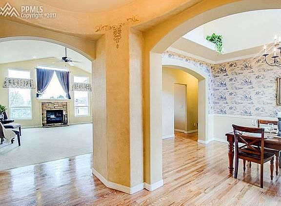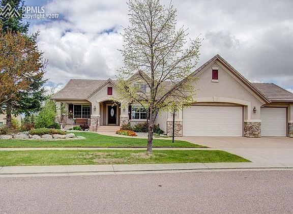 Beautiful Saddletree Homes Former Model. Ranch With Full Basement,Stucco/Stone Exterior. Entryway Features A Rotunda With A Tuscany Flair,Flanked By A Formal Dining Room And Office With French Doors,All With Real Hardwood Floors. Living Room Has A Gas,Stacked Stone Fireplace With Exquisite Views Of Pikes Peak And The Mountains! The Kitchen Features Brand New Stainless Steel Appliances,A Pantry And A Breakfast Bar With Stacked Stone Facing,Which Opens Up To A Dining Area With A Walkout To A Deck With Mountain Views.,The Spacious Master Bedroom Again Features The Walkout To The Deck With The Mountain Views; A Beautiful 5-piece Master On-suite With Jetted Tub And Stand Alone Shower Adjoins The Master Bedroom And With A Walk-in Closet Of Your Dreams! A Guest Bedroom And Bath Are On The Main Level,While The Laundry/Mudroom Exits To The Oversized 3 Car Garage. The Fully Carpeted Basement Features A Wet Bar,Huge Family Room Adjacent To Your Entertainment Room,All Pre-wired For Video/Audio And Complete With A Raised Stage! Two More Bedrooms With Walk-in Closets Grace The Basement Along With A Full Bath. The Home Features Custom Window Treatments,Pocket Lights And Built-in Speakers Throughout. Mature Landscaping With Fruit Trees,Automatic Sprinklers,Central Air And Central Vacuum Adorn This Beauty! Come Make This Your Dream Home Before It's Gone!