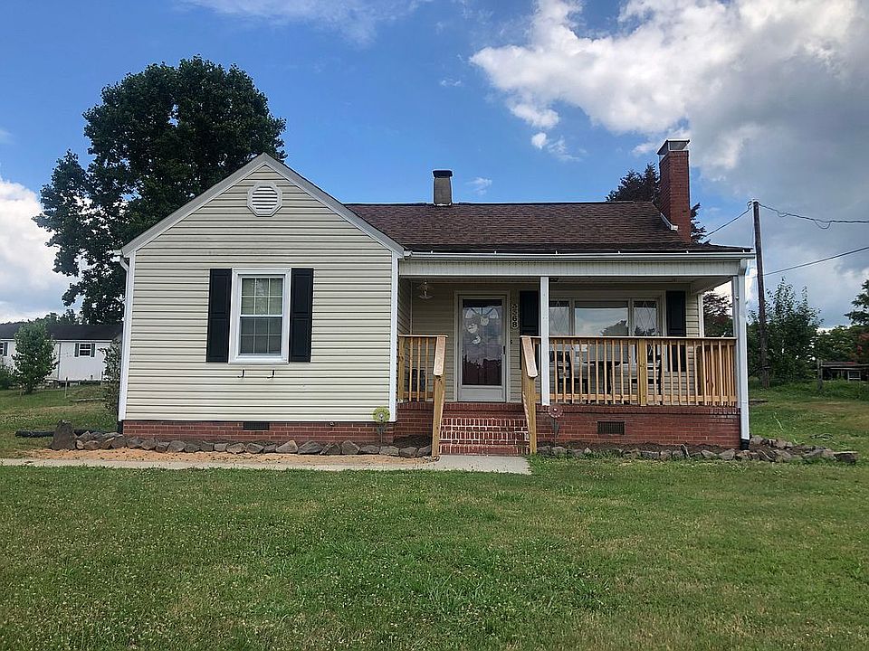 Charming mid-century farmhouse on .85 acre in rural setting near the quiet town of Mocksville. You will love the rocking chair front porch and the covered deck in back. Inside new wood look plank tile flooring in kitchen and hall, original hardwoods in living and bedrooms, and fresh paint! Huge eat in kitchen and nice sized living room, 3 bedrooms and 2 full baths. Don't miss the red claw foot tub in the master bath! The over-sized garage doubles as a workshop. Plentiful storage in garage and outbuilding.