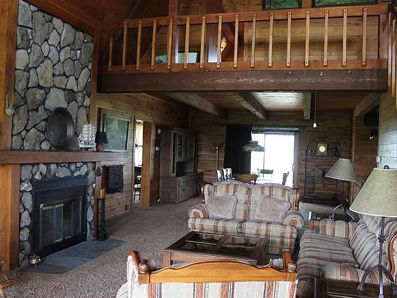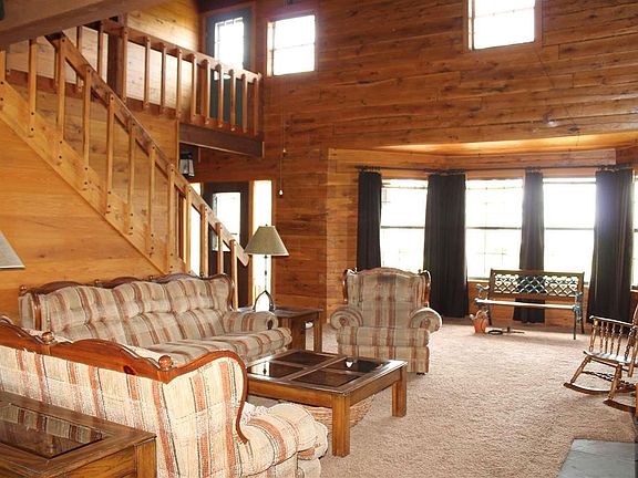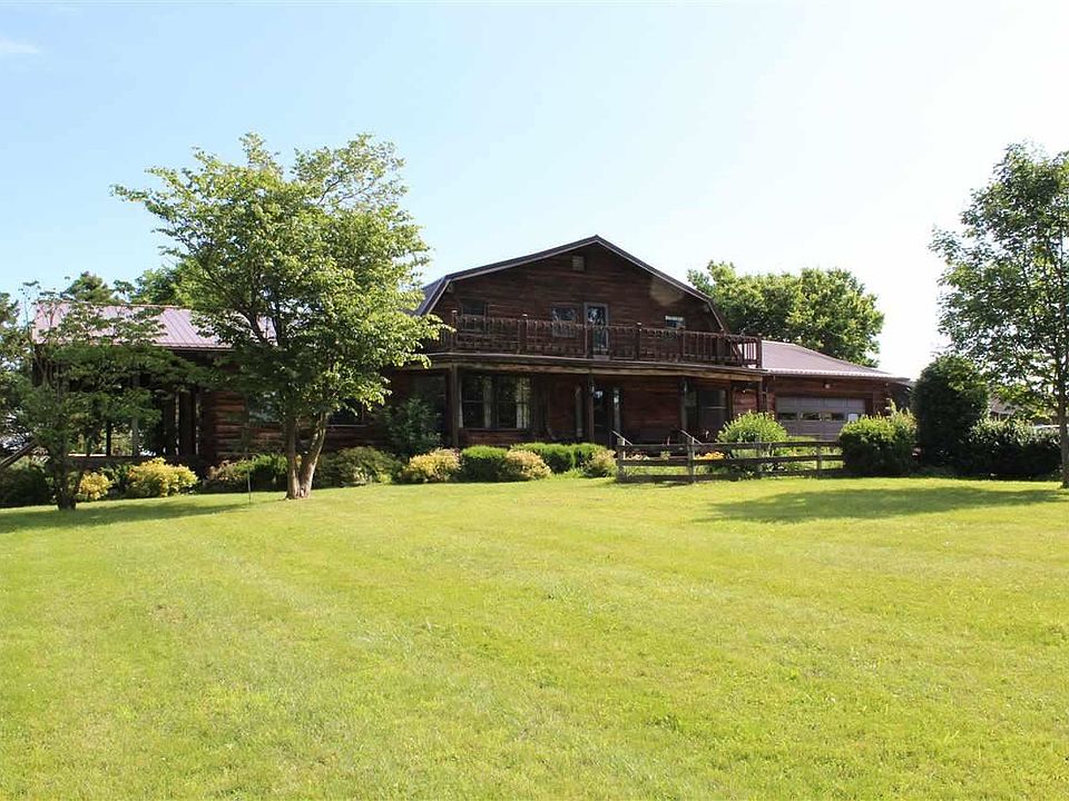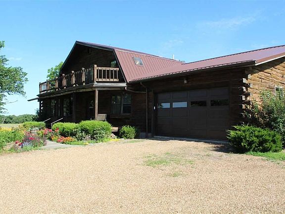 One of a kind! Unique rustic, oak log home with 6 bedrooms & 5.5 baths. Room for everyone with 2 main floor family rooms, 1 with stone fireplace, cathedral ceiling & exposed beams. Dining room, open kitchen & eat-in area. 2 main floor master suits & 4 bedrooms upstairs. 3rd family room/rec-room in full partially finished basement. Room for outdoor entertaining with covered front porch & huge wrap around deck. New roof & railing on front porch balcony. Sits on +/-30 acres with quiet, country feel & frequent wildlife views. Perfect place for horses with 5+ stall barn with water & electricity along with lean-to & machine shed. Creek fed pond with dock. Additional 60 acres may be available. Seller taking den, dining & kitchen light fixtures & replacing with different fixtures. Seller offering $3,000 carpet allowance as well as appliance allowance of $3,000 for new fridge & cook top(s). Land has been leased thru 2018.