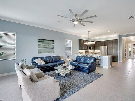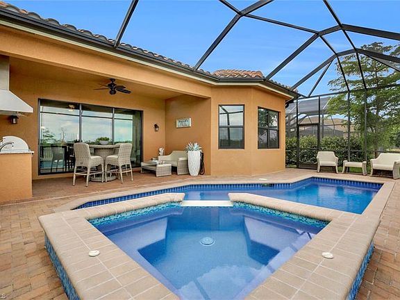 LEAST EXPENSIVE POOL & SPA HOME IN RIVERSTONE! This immaculate, 4 year old, "Tribeca" floorplan offers 3 Bedrooms, Den, 2.5 Baths, and 2234 Sq Ft under air and is situated on a private, preserve view lot! Inside, you will find a light and bright Great Room style floorplan with sliding glass doors to the lanai, where you will find a heated Pool & Spa and BRAND NEW Custom Outdoor Kitchen complete with a top-of-the-line Blaze Gas Grill, Range Hood, and Refrigerator. The Kitchen has all New Top-of-the-Line KitchenAid Appliances, gray cabinets, counter height bar, and granite counter tops. Other fine appointments of this home include Tile throughout (No Carpet), Upgraded Lights & Fans, Fresh Paint throughout, Crown Molding, and more! Riverstone is one of North Naples newest communities, including an impressive entrance and impressive clubhouse featuring Resort Pool, Lap Pool, Kids Water park, Indoor & Outdoor Basketball Courts, Tennis Courts, Fitness Center, Billiards Room, Social Hall, Hot Tub, and Pool Cabanas. Full-Time Social Director! Located just 5 min to I75, 15 min to the Beach/Mercato/41. 20 min to Downtown Naples/Miromar Outlets, & RSW Airport.