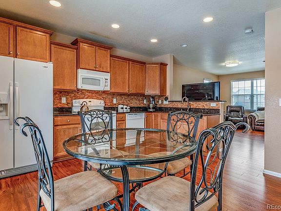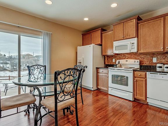 Great home for a large or growing family in The Terrain backing to open space!! Marble entry floor and gleaming engineered wood floors throughout the main level! Cozy family room off of the kitchen is perfect for game day or family get-togethers! Large eat-in kitchen with plentiful stained maple cabinets and granite countertops! All kitchen appliances are included! Step out to the rear patio and enjoy open space views! Upstairs are two master suites, and two secondary bedrooms share a 3rd full bath! All baths have marble floors! Quiet cul-de-sac location. 5 minute drive to I-25, Castle Rock shopping, and entertainment! Special features include a brand new 50-gallon water heater, radon mitigation system, rough-in plumbing in the basement, and an oversized 2-car garage! The Terrain community offers miles of walking trails, pool, clubhouse, two pools, a dog park, private swim club, and more! Buyers got cold feet, come on back!
