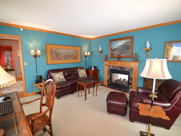 Own Your Own Sanctuary! This beautiful custom built 1-owner two story offers amenities galore plus a private Better Homes & Gardens-style park-like yard. Inside you'll find spacious rooms, lots of tall windows, oak hardwood floors, fantastic storage with built-ins, crown molding, huge closets and so much more. The main floor features a roomy study, with dual facing fireplace, den with built-in shelving and tall windows and access to fully landscaped yard. Just off the den is a spacious kitchen with island, under-cabinet lighting, custom cabinets, and breakfast nook. The dining room features a beautiful chandelier with medallion finish. A convenient 1/2 bath and broom closet just inside the garage entrance round out the main floor. Up the stairs is a spacious master suite with a dual-sided fireplace, private bath with jetted tub, dual-sink vanity, walk-in shower, and private water closet. The 2nd floor also features 2 generous guest bedrooms with walk-in closets, a full guest bath with dual sink vanity and private water closet, plus laundry. The basement is fully finished with a huge family room featuring a gas fireplace, wet bar, pool table, and daylight windows. You will also find another sizable guest bedroom, a full bath, and a huge storage area. The park-like yard is fully landscaped and features walking trails, a gazebo, bird bath, bench, and fenced area for a garden. As you walk the trails you will enjoy numerous trees including Honeycrisp, Harold Red, crab apples, pine, oak, ash, birch, and maple, plus bushes and lilacs galore and don't miss the hidden room among the bushes. This unique home offers too many extra features to write here. Stop and see it for yourself. Contact a realtor for a private showing today!