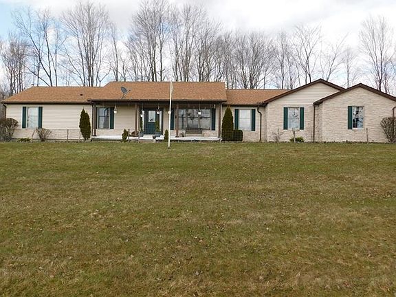 26 Acres included with this stone and vinyl ranch perched on the top of a slight hill. So many possibilities await you. Perfect for the horse and animal lover as well as the self-employed in need of storage buildings and/or a shop. Barn w/stalls and rubber flooring. Wildlife all around including: deer, fox & turkey. Oak kitchen, appliance package, recess lights. Plenty of space to grow in your ready to be finished basement. (Some drywall completed). Master BR en suite with double doors to rear yard and slight vault to ceiling. Fam. Rm./LR plus formal DR as well as eat-in kitchen. 2.5 baths. First floor laundry. 2 car att. garage.