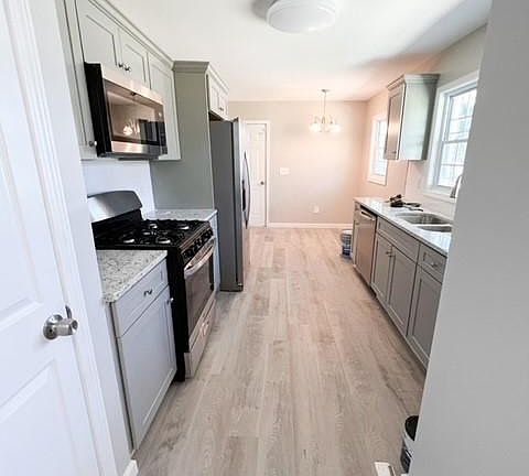 House recently renovated. All new paint, floors and appliances. No pets allowed. Has a basement with a living room and small bedroom. Application/Check must be sent in before any appts scheduled. 12 month minimum. quarterly inspection will take place with Pest control service included. Application must be filled out before we will show.