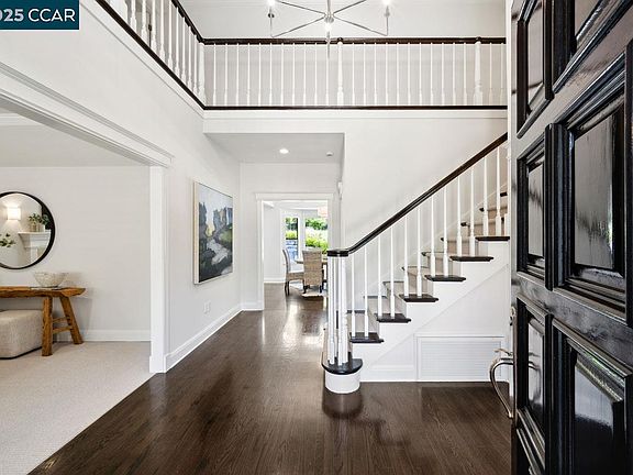 Welcome to this exceptional home in Lafayette's exclusive gated Baywood community—one of only three gated neighborhoods in all of Lafayette. Here, pristine homes and incredible neighborhood pride create an environment where Halloween trick-or-treating becomes legendary, and children forge lifelong friendships on the rare school bus rides to top-rated Springhill Elementary. This two-story residence spans 4,173± square feet on a 0.41± acre lot, featuring formal living and dining rooms alongside a beautifully updated kitchen with butler's pantry, casual dining area, and family great room with multiple backyard access points for seamless indoor-outdoor living. Upstairs, the primary suite offers a cozy fireplace, private balcony, updated en-suite bathroom, and walk-in closet. Additional bedrooms are bright, spacious, and thoughtfully designed for family and guests. The tiered backyard is an entertainer's dream, featuring a pool, spa, sports court, outdoor kitchen with pizza oven, fire pit, and raised garden beds with fruit trees. A private gate opens directly to Briones Regional Park, where rolling hills and grazing cattle create your extended backyard.