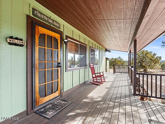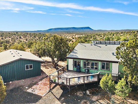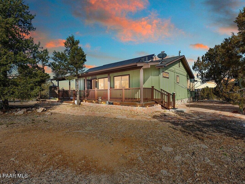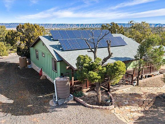 Quality-built off-grid home offering privacy, peace, and sustainable living in a rustic mountain setting. Features include an open floor plan with wood flooring throughout, granite kitchen countertops, hickory cabinetry, and blinds. Enclosed Arizona room provides additional living space ideal for entertaining. Spacious, comfortable bedrooms throughout. Enjoy stunning Aubrey Cliffs views from the back deck. Equipped with a state-of-the-art solar system and backup generator. Detached heated game/billiards room. Easy-living design with furnishings included. Plenty of storage. Come tour this gem today! This home is offered on 2 parcels, totaling 3.11 acres.