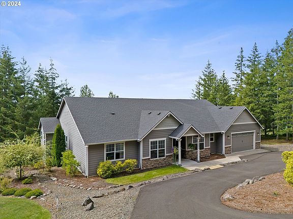A slice of paradise. Introducing this 2012 custom luxury home on two gorgeous acres in SE Estacada. This tastefully luxurious home was built for those who enjoy the finer things in life. A picturesque roundabout driveway with mature landscaping offers a wonderful first impression. Boasting of over 3000 square feet, this one level home features expansive vaulted ceilings that greet visitors with a lovely view of the greenery. Hardwood floors give way to a spacious living room with a gas fireplace and stone chimney. With an open concept floor-plan, the chef's dream kitchen has custom granite countertops, tile backsplash, custom cabinetry, and built-in stainless steel appliances. For remote workers, this home features an office and a bonus room that could be used as an entertainment center. Each bedroom features 9 foot ceilings, wall to wall carpet, and walk-in closets. The primary suite includes a soaking tub, tile shower, granite countertops, and a sliding door that leads to a large Trex back deck. Enjoy your morning coffee with a view of the hills and trees as you relax on the deck with a fire pit. Below the deck is a well-manicured green space that leads to a gazebo and bar, perfect for entertaining. A large two car garage with a storage loft ensures you of plenty of space for all your toys. The property is located close to a small, private airport, perfect for the aviation enthusiast. Properties like this are not for sale every day. Seize your opportunity to own a piece of exquisite luxury and schedule a private showing today.