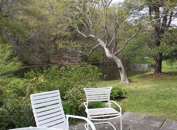 Spacious Berkshire Model at the end of a quiet dead-end road. Easy access with level short walk from one-car garage to front door. Pond views from living room, dining room, bedroom and private patio surrounded by Forsythia bushes. Living room with fireplace boasts crown molding, newer carpeting and sliders to patio. Dining room with chair rail also has access to patio. Galley eat-in kitchen has newer range, refrigerator and microwave. Master bedroom has window seat, three closets and full bath. Two additional bedrooms, one with a wall of built-ins and full bath complete the home. With over 1,700sf of living space, this three bedroom, two full bath unit is in move-in condition and in the perfect location! (Internet 5986398-7/9/2012)