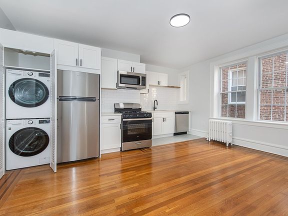 Newly renovated 1-bedroom apartment available in the heart of downtown Nutley. Features a luxury kitchen with quartz countertops, modern cabinets, stylish tiled backsplash, full suite of stainless steel appliances which includes the fridge, range, dishwasher, and microwave. Full size washer and dryer in unit. Large windows, LED lighting, and subway tiled bathroom with black matte fixtures. Beautifully restored original hardwood floors throughout the apartment.