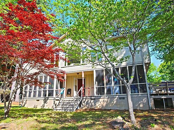 Unrestricted! This getaway home is located within, but is not a part of, The Reserve at Lake Keowee. It is situated on a spectacular point lot with over 300 feet of rip-rapped shoreline, gorgeous views and a huge yard (plenty of area for all of your favorite outdoor activities) surrounded on 3 sides by water. Ways of getting out on that water have not been overlooked. There is an actual boat ramp (extremely rare for individual properties on Lake Keowee), covered boat/Jet Ski storage area and storage building located ON the property. It's a modest home with an open floor plan on an incredible lot. It features a large gathering area, screened in porches, 4 bedrooms and 2.5 baths. The perfect place for weekend getaways, short-term rentals, family gatherings or the best combination for you. The home will need updates. This is a unique opportunity rarely found on Lake Keowee. Similar waterfront lots in The Reserve have sold from $750,000 to $950,000.